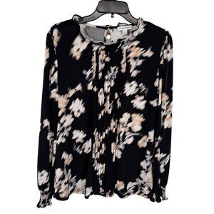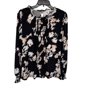 Calvin Klein Black Floral Blouse Pleated Long Sleeve knit Womens size Large
