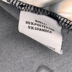 This Calvin Klein blouse offers a chic floral pattern in black and beige. The long sleeves and pleated design add a touch of elegance suitable for formal or casual settings.