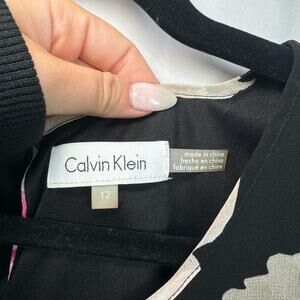 Calvin Klein Black Floral Sleeveless Chiffon Mini Shift Dress Size 12 in excellent condition