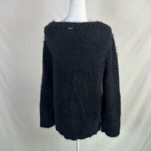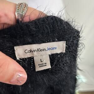 Calvin Klein Black Fuzzy Acrylic Cotton Sweater Large Oversize Business Casual
