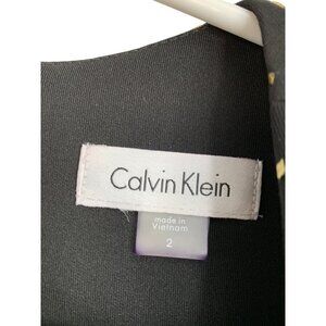 This elegant Calvin Klein dress is designed with a classic sheath silhouette, featuring a striking black and gold polka dot pattern. The dress is crafted from a comfortable polyester and spandex blend, providing a flattering fit. Ideal for formal events or professional settings.