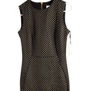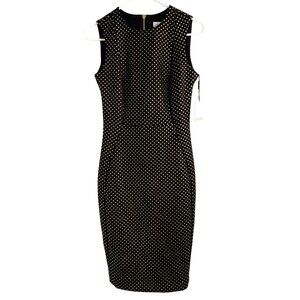 Calvin Klein Black & Gold Polka Dot Sleeveless Sheath Dress Size 2 NWT Pencil