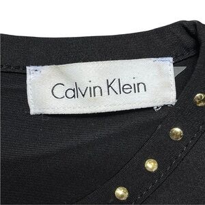 In good condition •Calvin Klein •Black Studded Neckline •Short Sleeve •Mini Dress •Size Tag Missing •Some Piling •Party •Casual •Gold Exposed Zipper