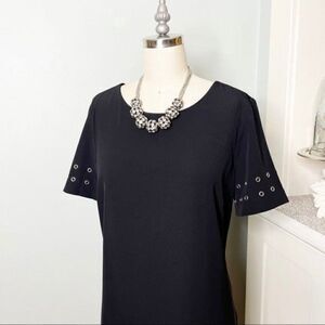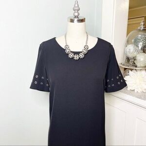 Calvin Klein Black Grommet Shift Dress Short Sleeve 8 Medium