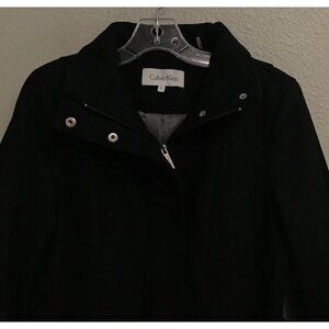 Calvin Klein Black Heavy Wool Blend Jacket Belted Women's Size 8 Mid Length
