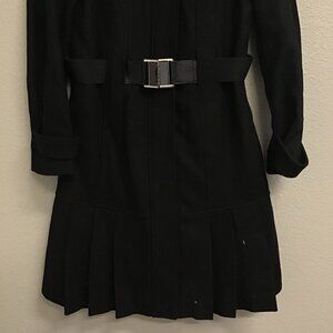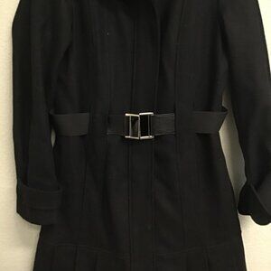 Calvin Klein Black Heavy Wool Blend Jacket Belted Women's Mid Length