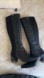 Sleek black heeled boots by Calvin Klein. Elegant design with a modern touch. Perfect for versatile styling.
