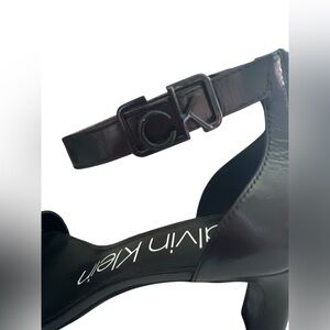 Elevate your style with these sophisticated black heels from Calvin Klein. Crafted with a sleek design, these shoes offer a perfect blend of elegance and comfort. Ideal for any formal occasion, they are a must-have addition to your wardrobe.