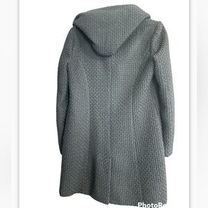 From my personal closet. Please note that my lighting kept softening the image so this coat is truly black (for exact color see the photo with the Calvin Klein tag and size tag). Includes belt. I had this dry cleaned so it is ready to be worn as soon as you receive it. One of the lower buttons is missing but once buttoned, isn’t fully noticeable. This is good in VERY cold weather and it’s quite warm and heavy.