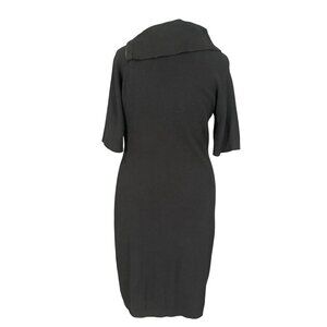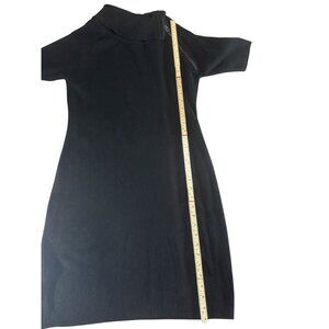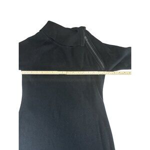 Calvin Klein Black Knit Asymmetrical Zipper Dress Womens M Acrylic Short Sleeve