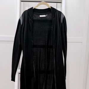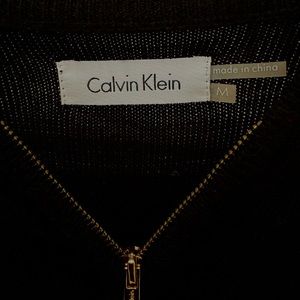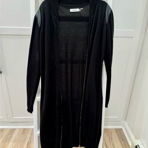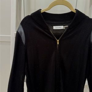 Calvin Klein size 6. Winter black sweater knit dress with a full front zipper. Faux leather accent at shoulders.