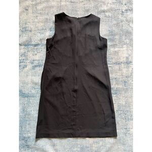 Black sleeveless sheath dress from Calvin Klein. Lace up neckline design. Silver tone metal accents. Back zip. Has pockets!!