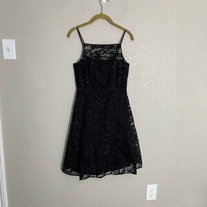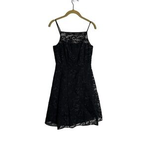 Calvin Klein Black Lace Overlay Fit Flare Cocktail Dress Formal 2 Petite