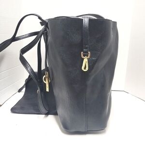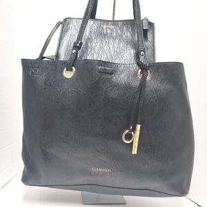 Calvin Klein Black Leather Tote with Gold Hardware + Matching Pouch