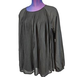 Calvin Klein Black Long Sleeve Pleated Chiffon Blouse Size Large Women's