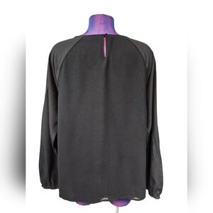 In like new condition Calvin Klein Black Long Sleeve Pleated Chiffon Blouse Size Large Women's.