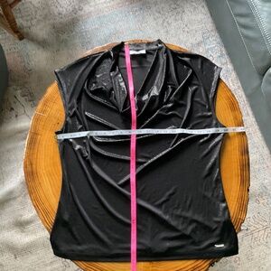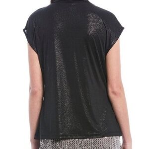 Calvin Klein Black Metallic Shimmer Cowl Drape Neck Stretch Top Blouse