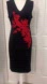 Chic black midi dress with bold red floral accents. Perfect for stylish occasions.