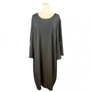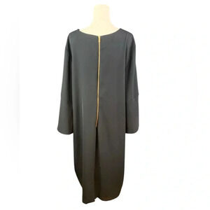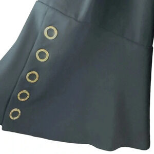 Calvin Klein Black Mini Dress with Bell Sleeves & Gold Embellishments