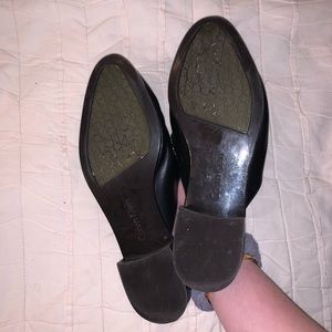Elegant black mules with a stylish gold chain accent. Perfect for any occasion.