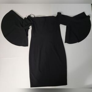 Calvin Klein Black Off the Shoulder 3/4 Bell Sleeve Whimsigoth Sheath Dress