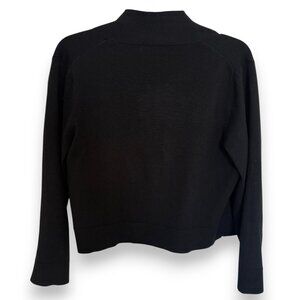 Classic Calvin Klein black cropped cardigan, perfect for layering over dresses, workwear, or evening outfits. This open-front bolero style has a polished, minimal look that elevates any outfit.