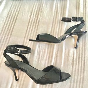 Calvin Klein Black Patent Leather Ankle Strap Sandals Medium Heel
