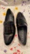 Calvin Klein Black Patent Leather Loafers Serine Slip On White Soles WM SZ 11