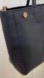 Elegant black leather handbag by Calvin Klein. Gold-tone accents. Dual handles and shoulder strap. In very good condition. No tears