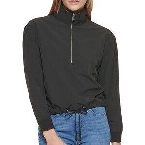 Elevate your style with this Calvin Klein Black Performance 1/2 Zip Jacket, perfect for all seasons. Its lightweight design and adjustable drawstring make it a versatile closet staple that combines comfort with fashion.