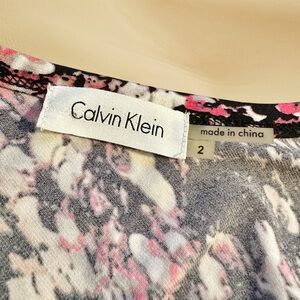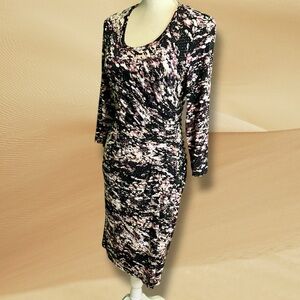 Calvin Klein Black & Pink Abstract Print Pleated Cinched Waist Jersey Knit Dress