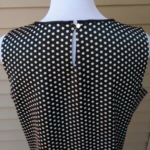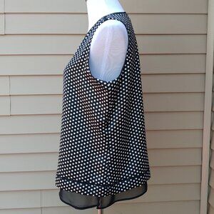 Calvin Klein Black Polka-Dot Shell Blouse Sleeveless Chiffon Trim Satin