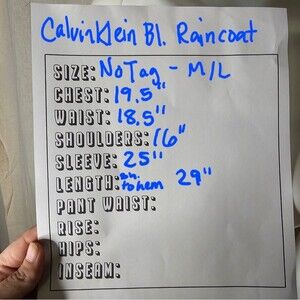 Calvin Klein Black Raincoat with Removable Hood size M/L