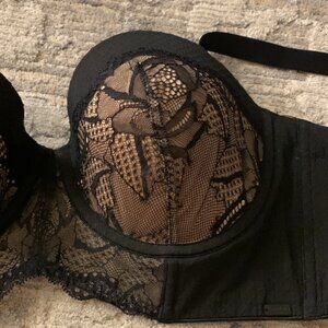 Calvin Klein Black Rose Lace Strapless Longline Bra QF4565, 34C NWT