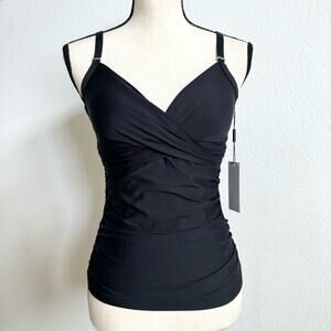Calvin Klein Black Ruched Tummy Control Tankini Top Women's XS NWT