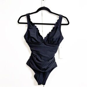 Calvin Klein Black Scalloped Neck One Piece Swimsuit Size 6