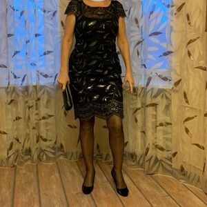 Stunning black midi dress with shimmering sequins. Perfect for evening events. Elegant and stylish design.