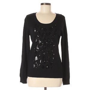 Stretch, black sequin abstract design on front, 50/50 wool/acrylic.