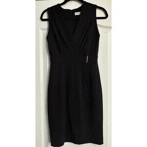 Calvin Klein Black Sheath Dress Size 2 V-Neck Sleeveless Knee Length