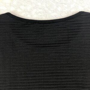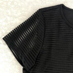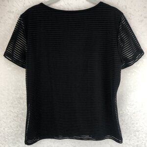 Calvin Klein Black Sheer Stripe Stretch Blouse Elegant with Short Sleeves Size L