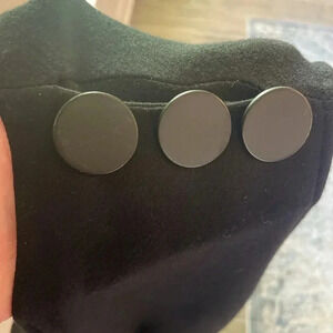 Calvin Klein Shell dress. Black sleeveless with three decorative round metal buttons on the top left shoulder. Zipper in the back goes almost 3/4 of the way down the dress. The bottom 2 inches is gathered for a fitted look. See pictures. This would be a great summer dress for a cocktail party, wedding, or even a Sunday brunch. Very stretchy and comfortable