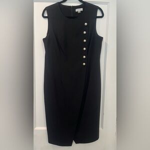 Calvin Klein Black Sleeveless Faux Pearl Semi Wrap Sheath Dress Size 12