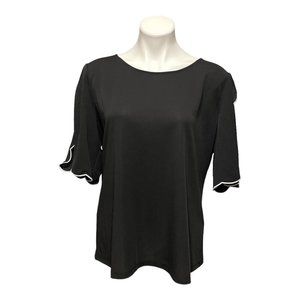 Calvin Klein Black Split Sleeve White Trim Scoop Neck Blouse