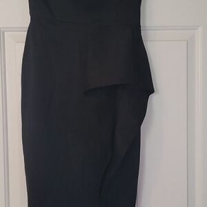 Keywords: strapless dress, black dress, cocktail dress, party dress, sheath dress, bodycon dress, asymmetrical dress, ruffle dress, evening dress, formal dress, little black dress, womens dress, special occasion dress
