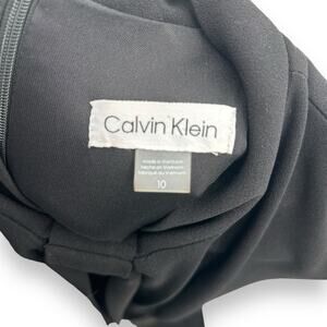 Calvin Klein Black Stretch jumpsuit Tie Neck Pockets Size 10 Wide Leg EUC