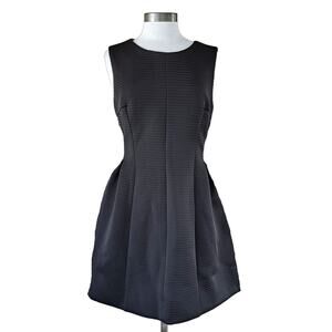 Calvin Klein Black Stripe Structured Fit & Flare Dress Size 14 Office Cocktail