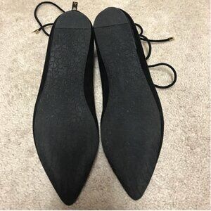 Calvin Klein Black Suede Lace Up Pointed Flats w/ gold hardware on end of laces