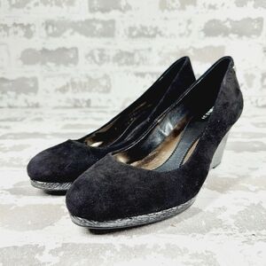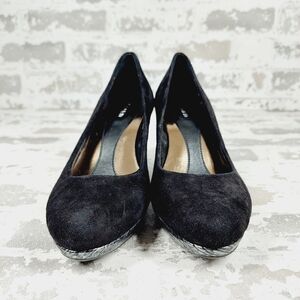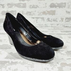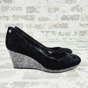 Calvin Klein Black Suede Slip On Evening/Office Silver Wedge Heels D121