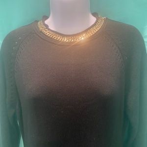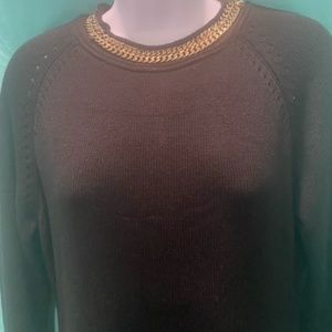 Brand is Calvin Klein Size Petite Large. Color is Black with Gold Chain Neck Band
