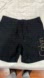 Sleek black swim trunks by Calvin Klein. Features prominent lettering. Ideal for beachwear.